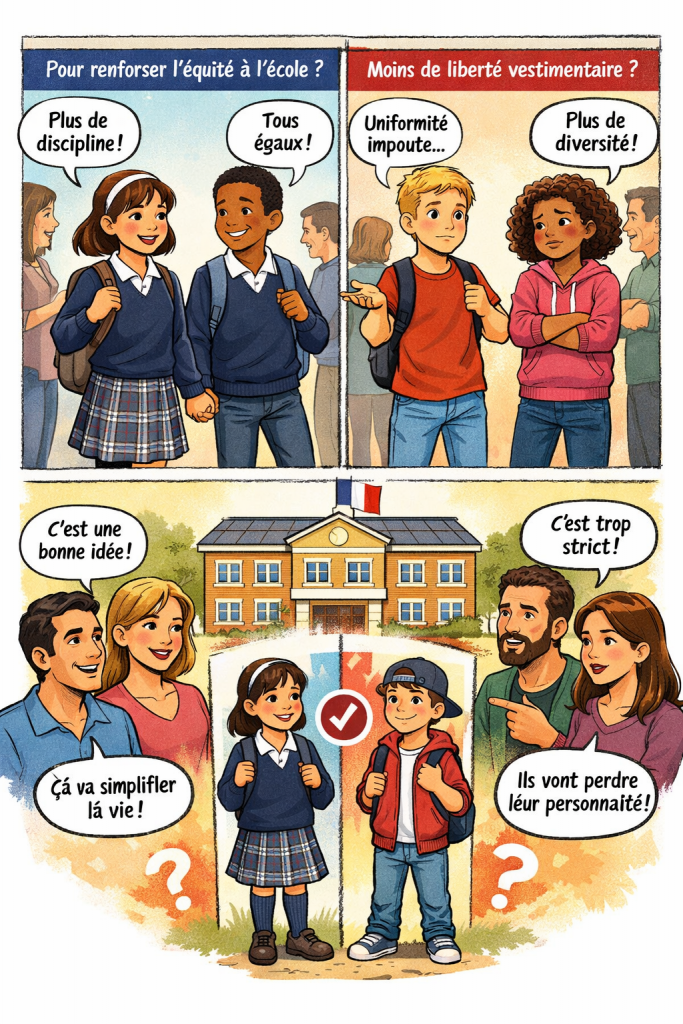 Du côté des parents favorables, l’uniformisation des tenues est perçue comme un facteur de simplicité au quotidien, réduisant les pressions sociales et les conflits liés à l’apparence. Les parents opposés expriment, eux, une crainte d’atteinte à la liberté d’expression des enfants et s’interrogent sur le coût réel pour les familles.